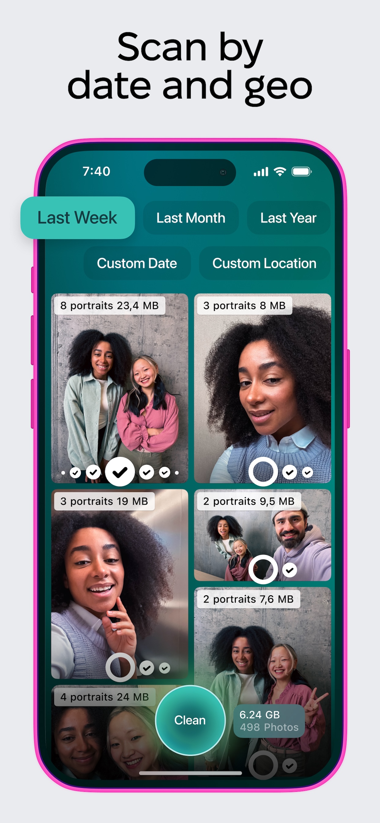 Utilize CleanMy®Phone’s Organize tool to manage your photos by category and perform scans by date or location. Organize runs a smart, AI-powered on-device scan of your images. After the scan is done, you can delete categorized images one by one or in groups, move them to folders, and more.