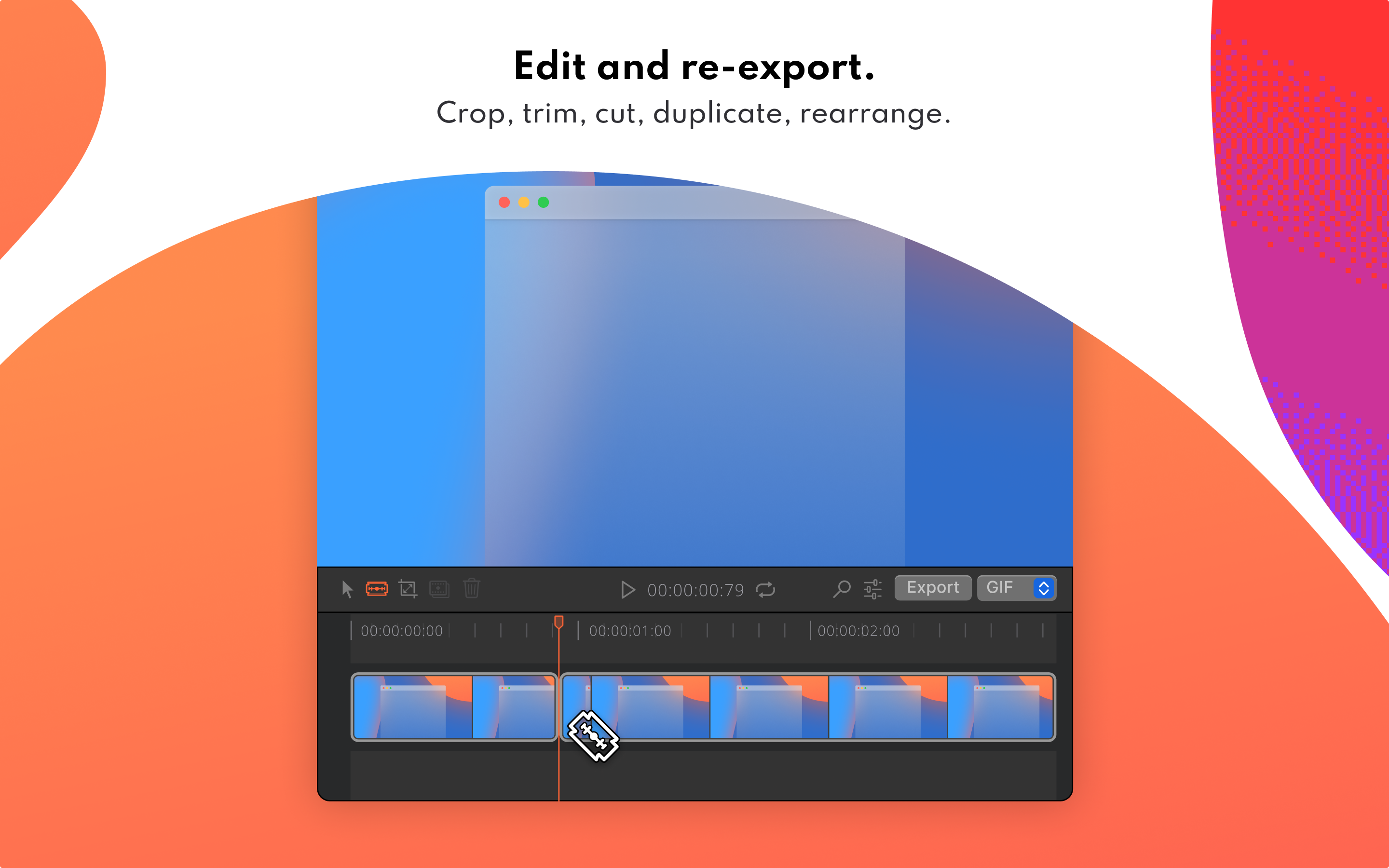Вирішуйте, що саме ви бажаєте записати та як це зробити. Gifox пропонує широкий спектр налаштувань, чи то запис всього екрана, чи лише бажаної області, а також вибір частоти кадрів. Також ви можете редагувати анімацію та вирізати лише потрібну вам частину.