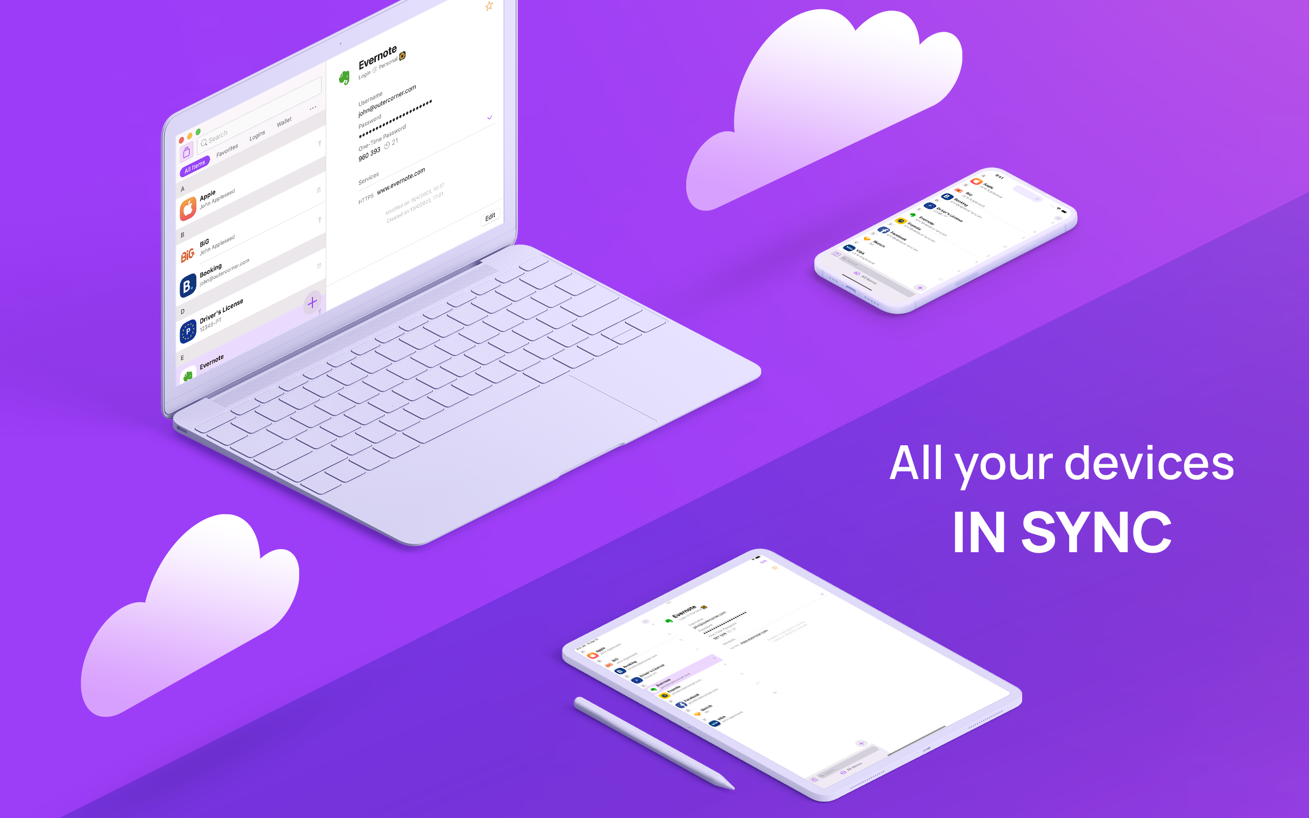 Легко отримуйте доступ до своїх паролів на Mac, iPhone та iPad за допомогою синхронізації паролів Secrets 4. Програма використовує ваш iCloud для синхронізації зашифрованих паролів і забезпечує безперешкодний доступ до них на потрібному пристрої. Розблоковуйте за допомогою Face ID, Touch ID або навіть Apple Watch.