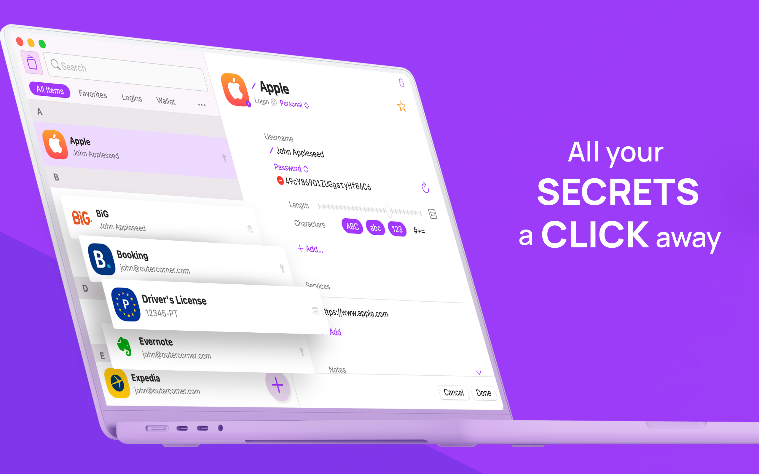 Не покладайтеся на стару формулу для всіх своїх паролів — скористайтеся Secrets 4, щоб генерувати паролі, які допоможуть захистити ваші акаунти. Вибирайте довжину та складність пароля відповідно до рівня безпеки, який потрібен для вашого облікового запису.