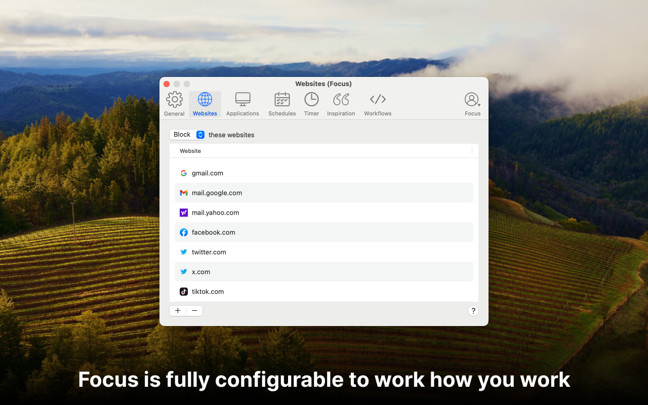 Mantén las distracciones a raya. Focus te ayuda en tu ritmo de trabajo para que dispongas de más tiempo para tu ocio.