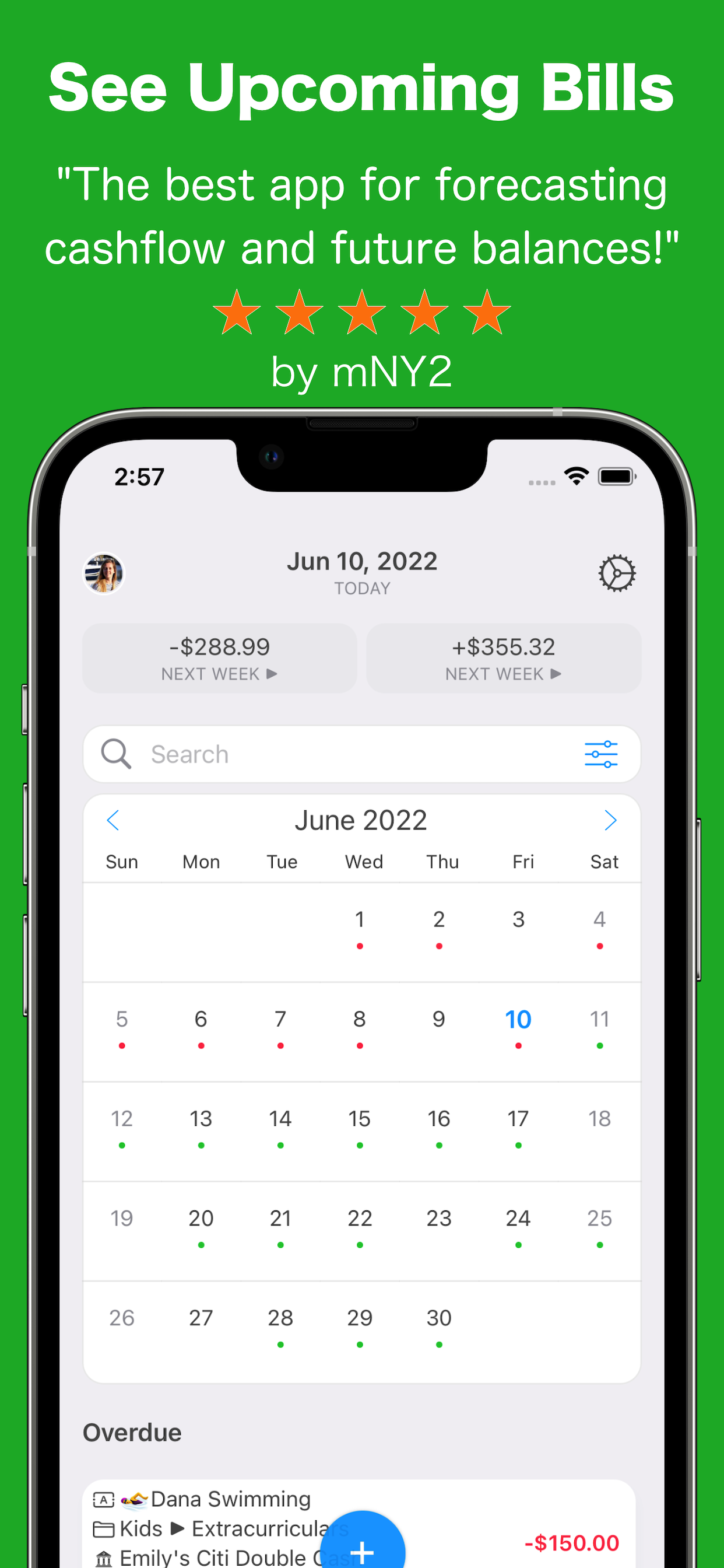 Tieni traccia delle tue spese ricorrenti e fai previsioni sulle spese future con strumenti dedicati in MoneyWiz 2023. Sfoglia le fatture passate o fai clic su una data futura per ottenere una previsione immediata.